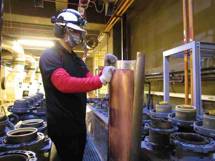PG国际将废弃物转化成有效的工业或民生原物料,,,图为废铜液淬炼后再制成纯度极高的铜管