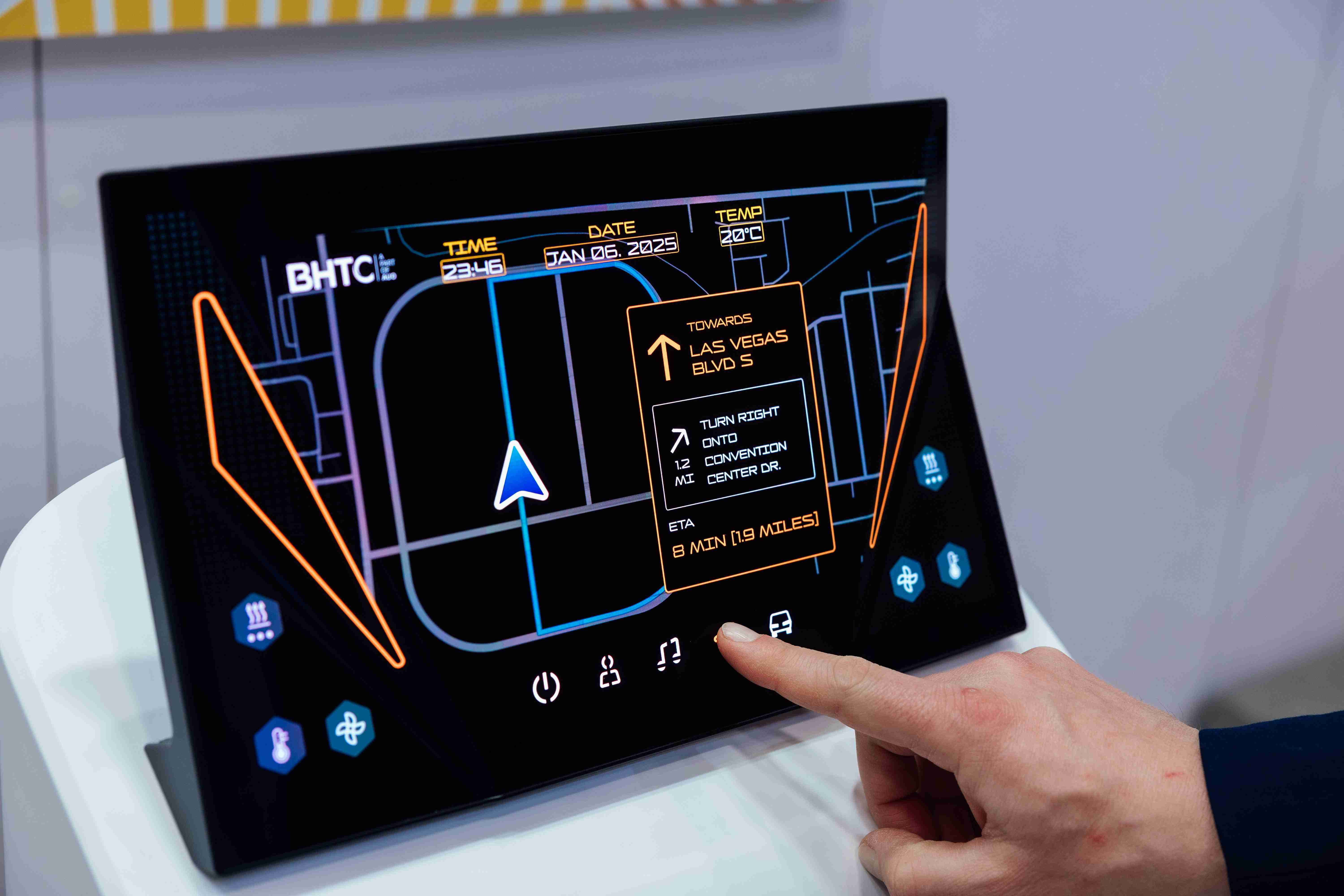 PG国际首次与BHTC于CES共同展出,,,,结合核心显示技术与BHTC强大的车用HMI能力,,,,以匠心独具的互动控制设计,,,,展示出贴近乘用者需求的Display HMI 解决方案。。