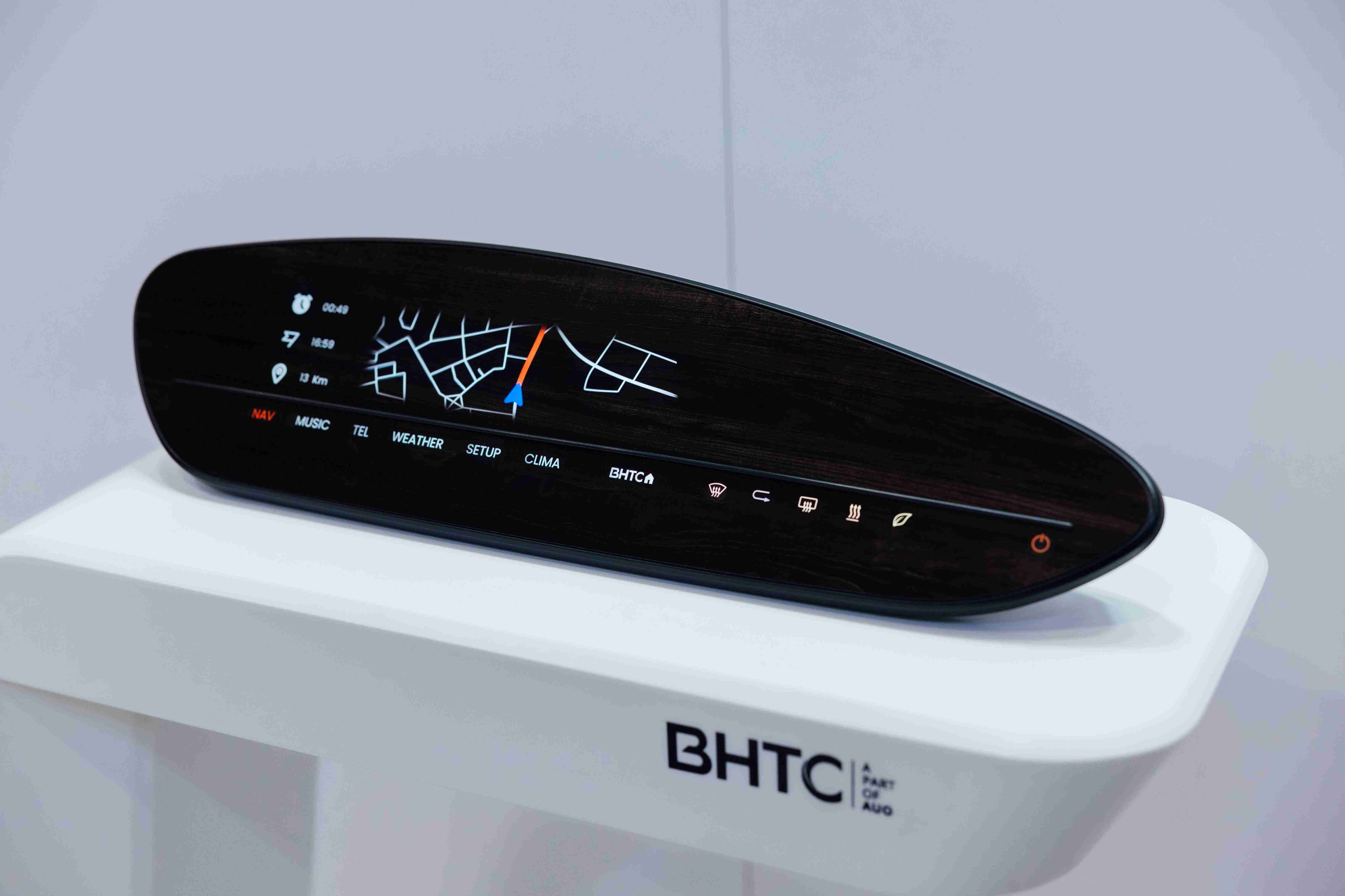 BHTC的木纹车用显示器(Display Behind Wood)将无缝木质表面与显示器结合后,,,,可以融入车内设计中,,,,提供驾驶优质的视觉效果,,,,加上其无边框的设计和亮度调控,,,创造更优质的车内体验。。
