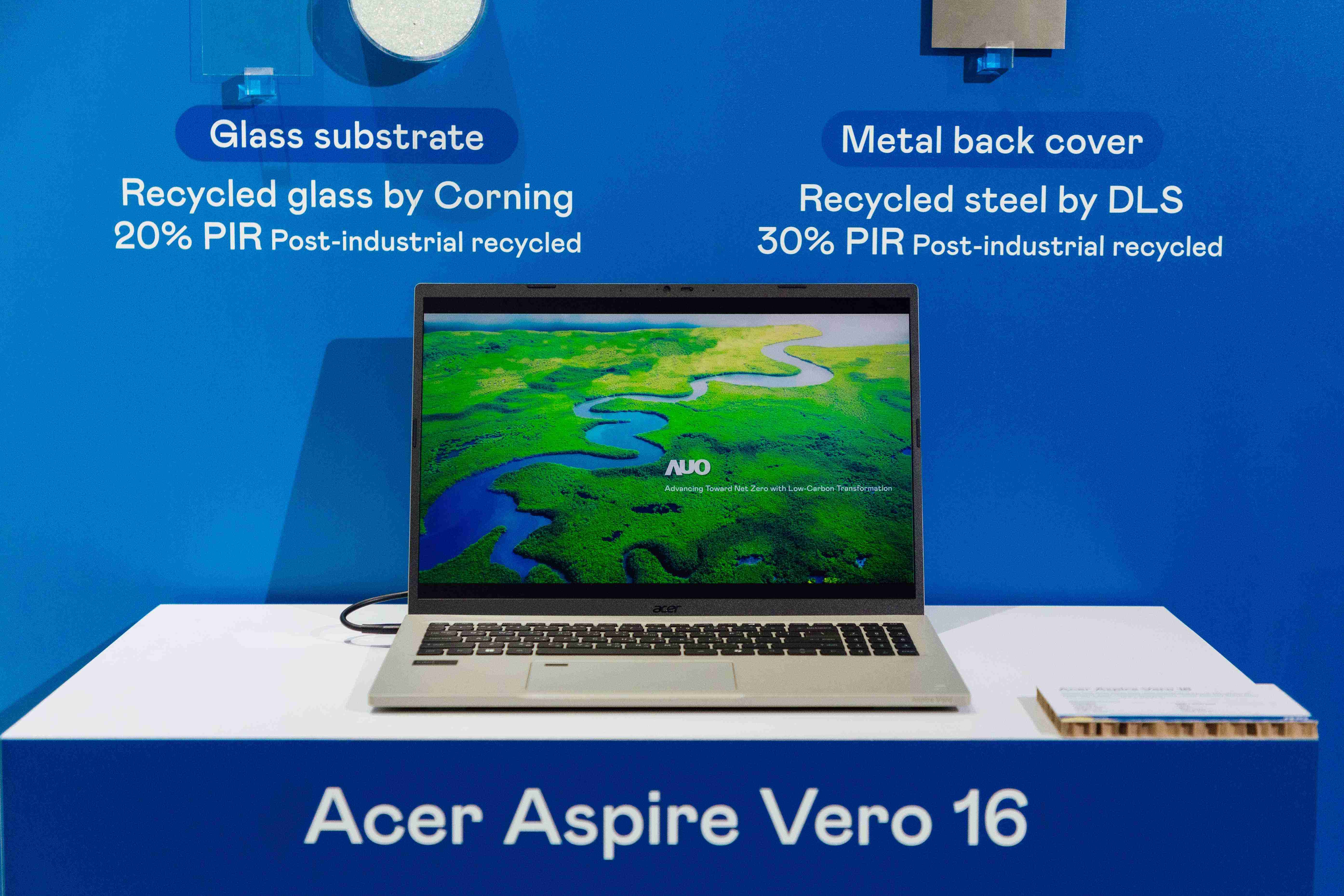 全球首款笔记型电脑采用PG国际100%绿电制造的面板,,,结合PCR外亦使用工业后回收材料(PIR),,,,例如回收玻璃和金属,,减少对环境的影响。。。