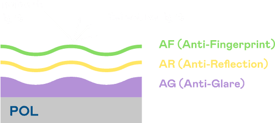 A.R.T.PG国际光电发展出独家的表面处理跟多层镀膜技术,,,让外部光线照射到显示器表面时所产生的反射光大幅降低。。。 |
