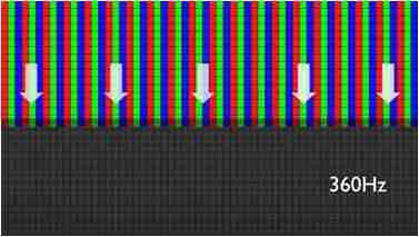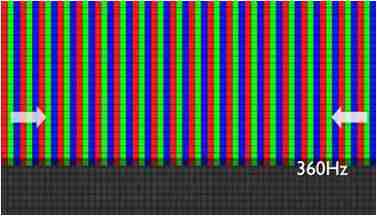 传统液晶驱动是从左到右单向进行,,,在画面更新速度愈来越愈快的情况下,,,,位于驱动线路末端的右下角区域,,,,画素的闸极来不及在短时间内获得足够电压,,无法显示出正确的颜色资讯。。。 |